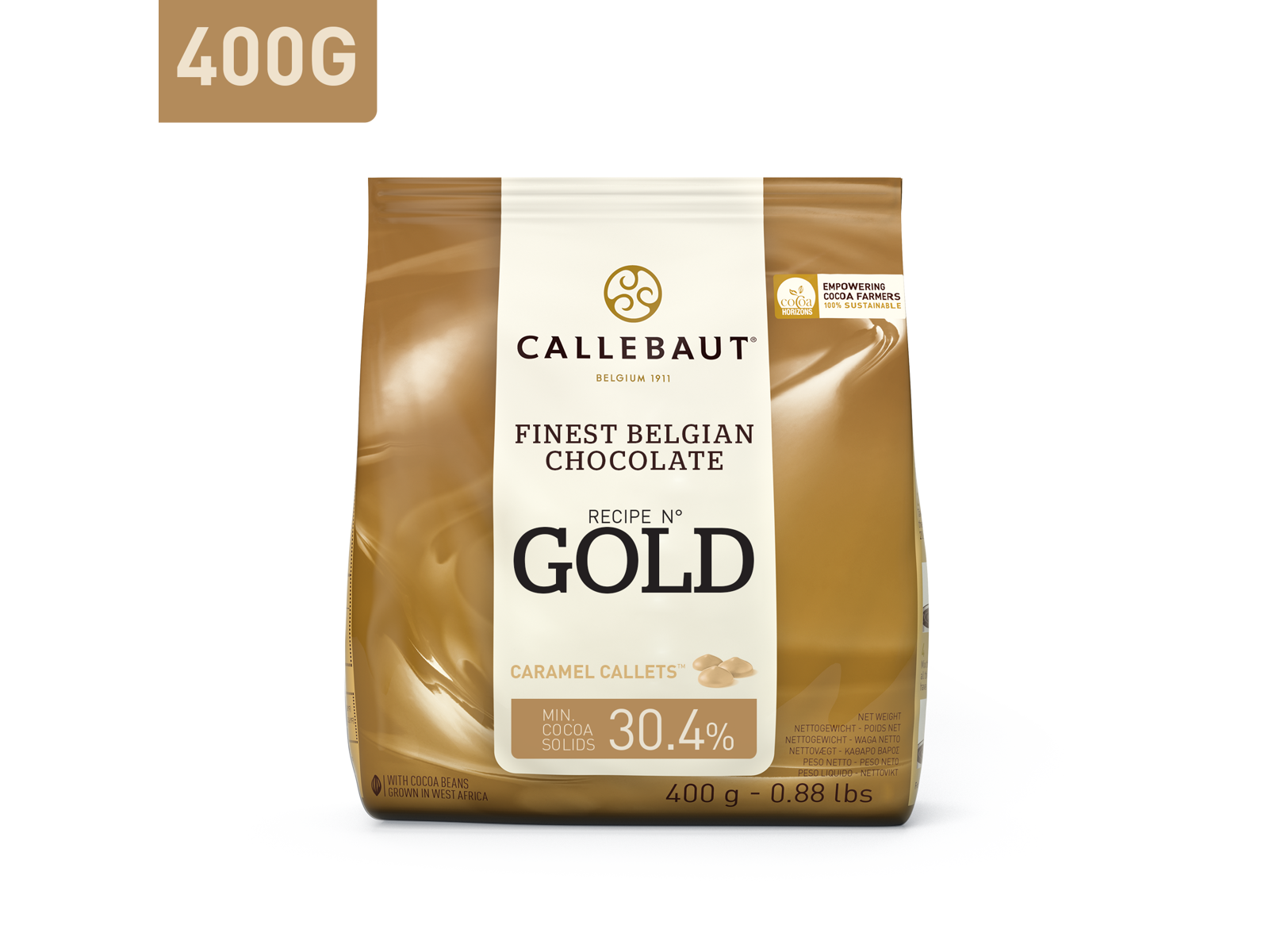 GOLD er hvid chokolade karamel knapper, der er sammensat af et fint udvalg af ingredienser som karamelliseret sukker og karamelliseret mælk.