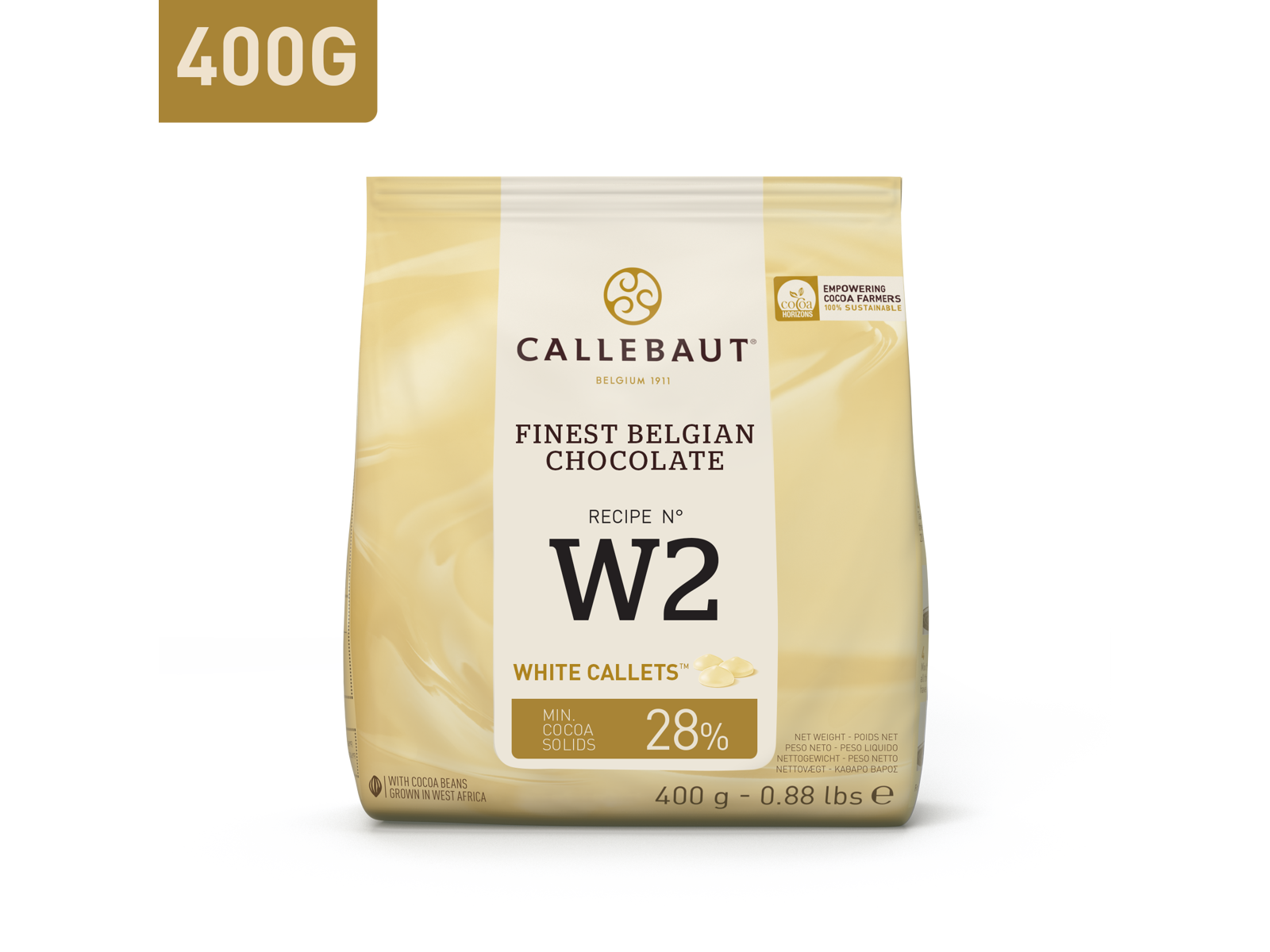 Callebaut Hvid Chokolade knapper er så belgisk som det kan være, da det hovedsagelig er fremstillet af mælk fra køer, der græsser på belgiske græsgange og sukker fra lokalt dyrkede sukkerroer.