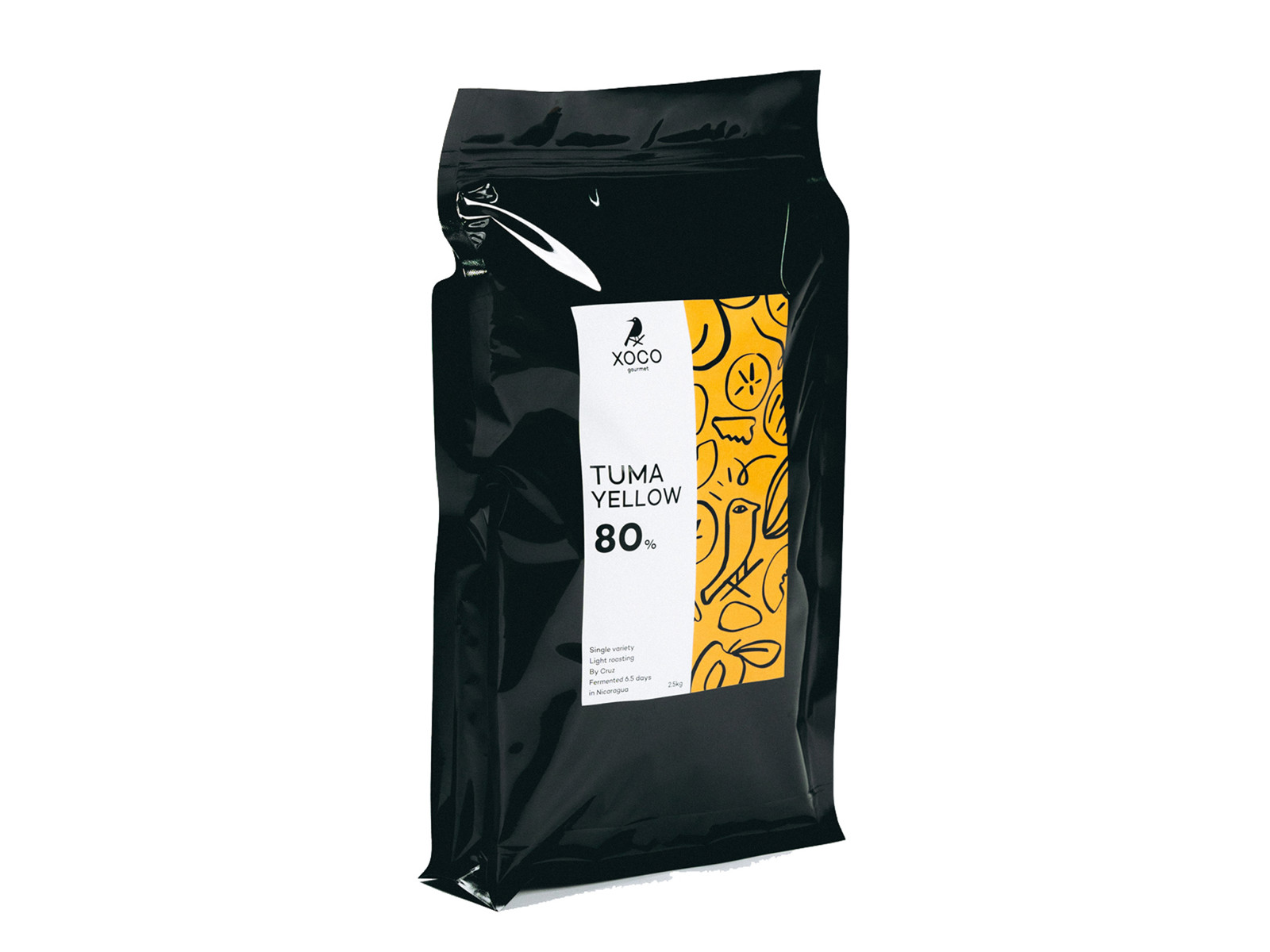 Den er noget for sig selv. De fyldige og næsten fede noter som Tuma Yellow sorten har iboende i sig, gør at selv i 80% mærker man ingen bitterhed, og man fristes til at tro at det på ingen måde kan være over 70%.