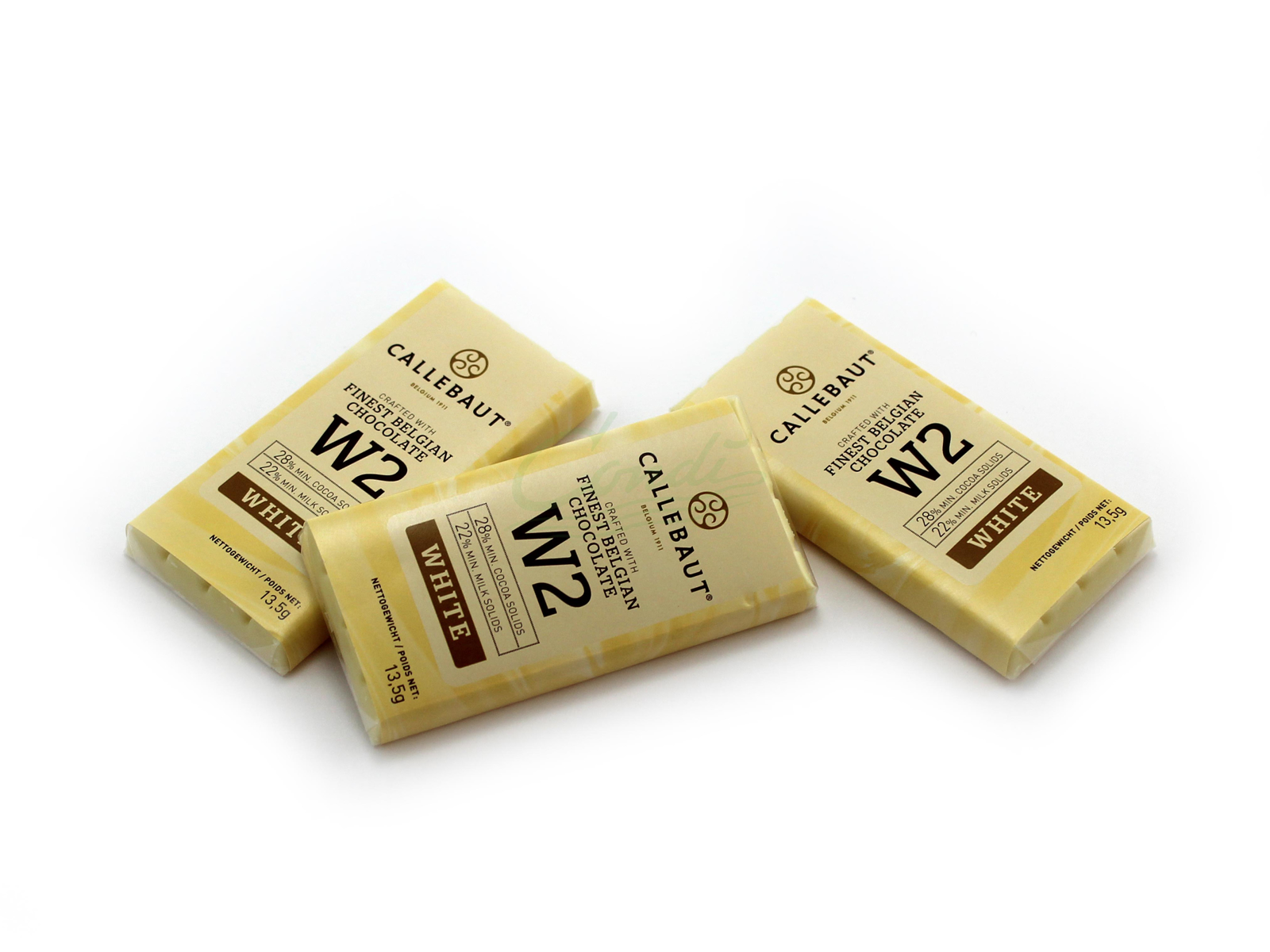 Nu kan du få den super lækre W2 hvid chokolade fra Callebaut i mini-pladechokolade størrelse også kaldet Napolitana.