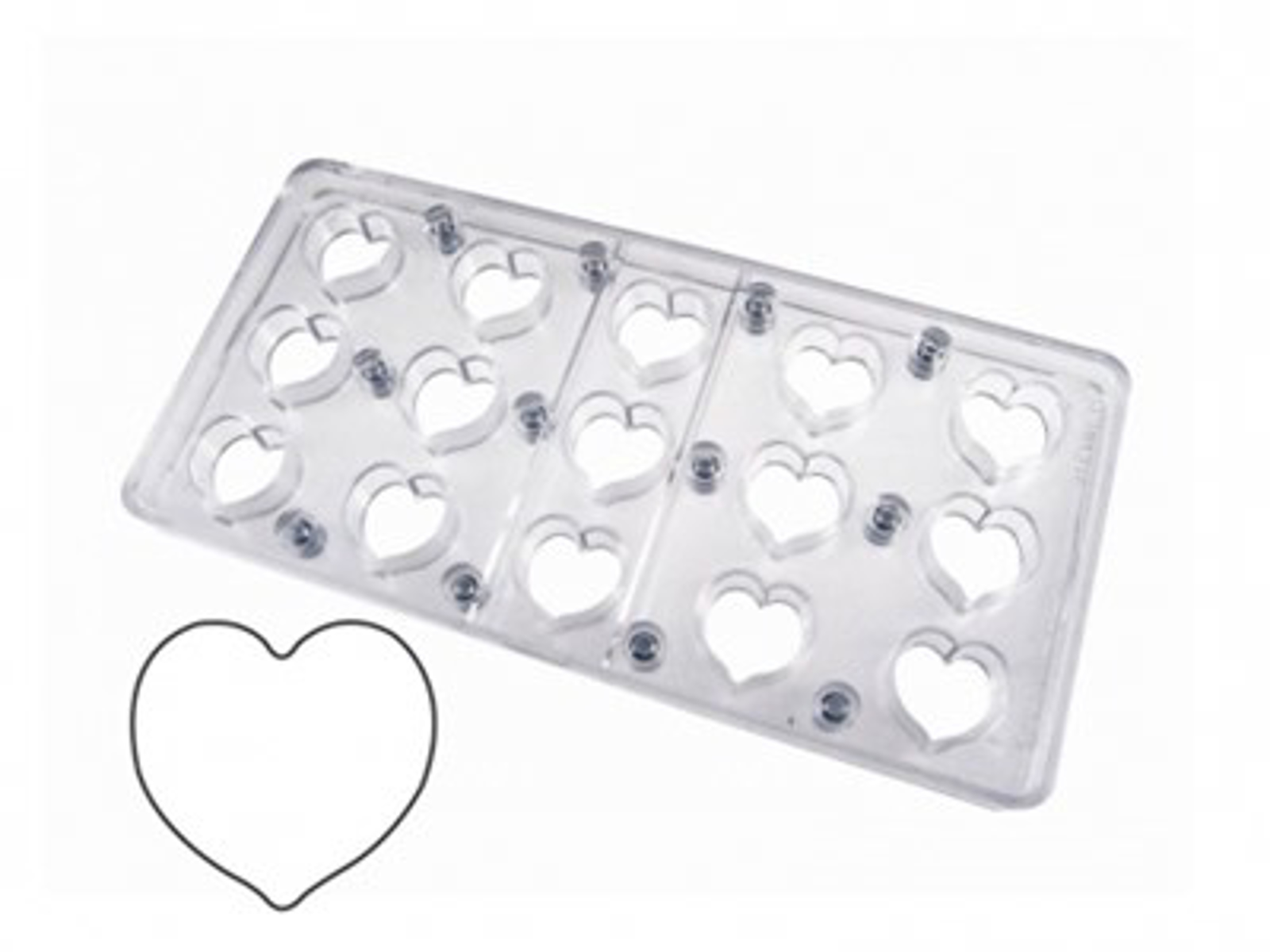 Formen holdes sammen af magneter, og kan bruges ofte sammen med chokoladefolie (transfer sheets) der giver mønster på chokoladen.