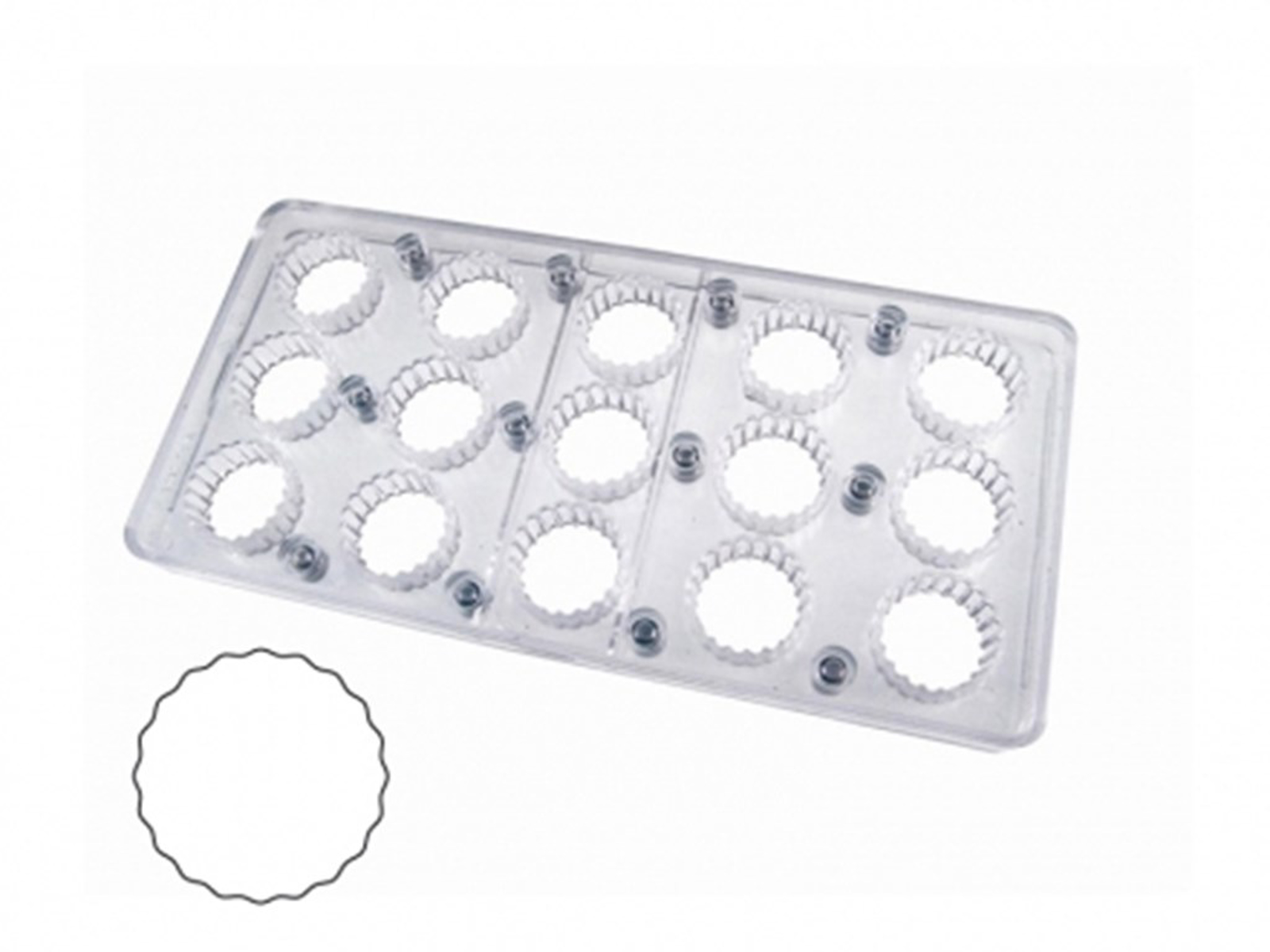 Formen holdes sammen af magneter, og kan bruges ofte sammen med chokoladefolie (transfer sheets) der giver mønster på chokoladen.