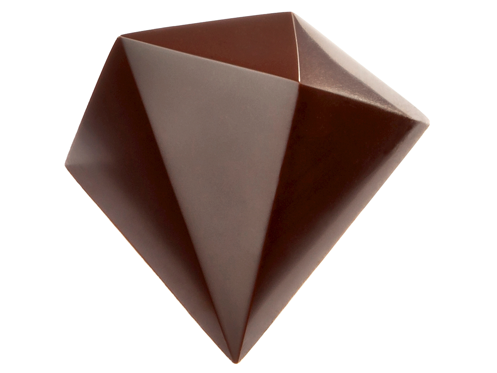 Professionel chokoladeform med diamant form fra Belgiske Chocolate World. Fremstillet i førsteklasses kvalitets polycarbonat. Flot form som især er god til fyldt chokolade.