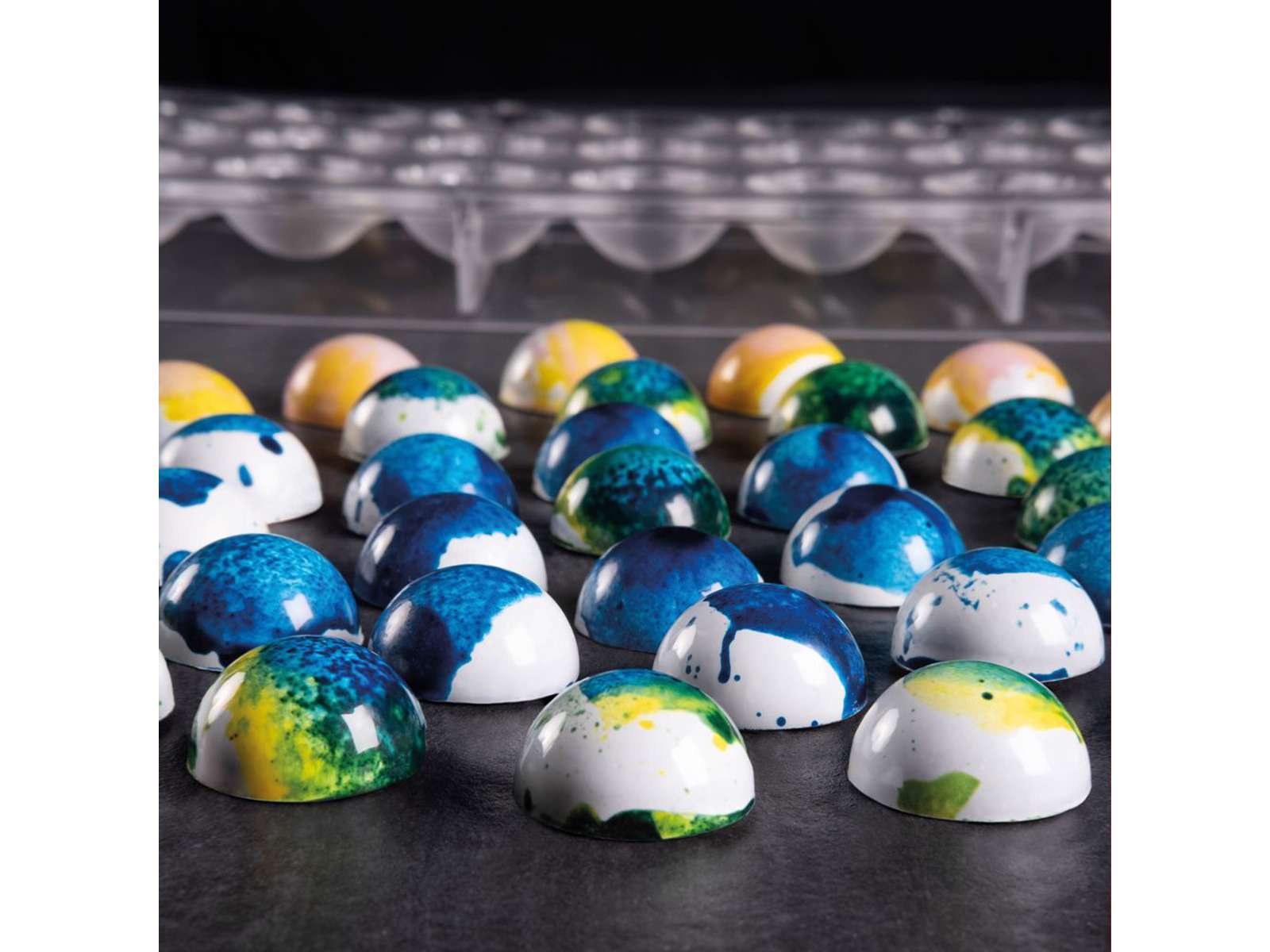 Pavoni Chokoladeform Halvkugle giver 45 stk chokolader i formen. Hvert stykke chokolade er ca +/- 2,5gr.