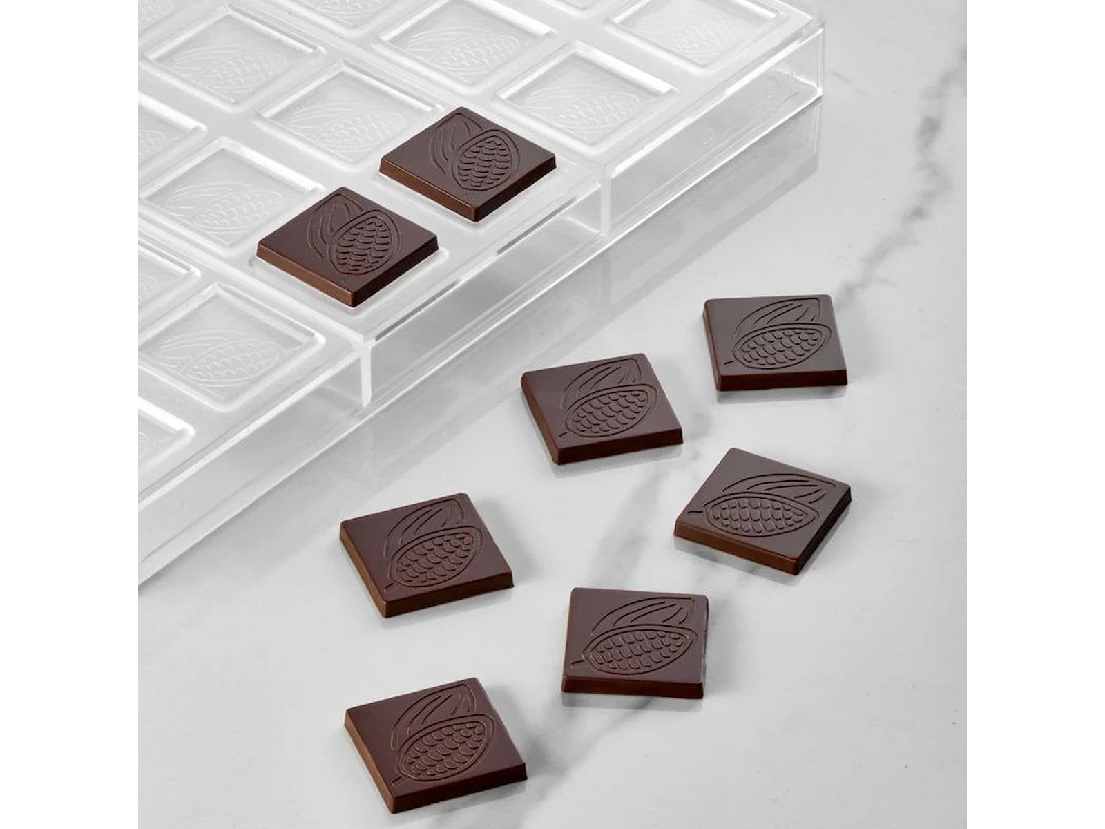 Størrelsen på chokoladestykket er 32x32x4,5 mm