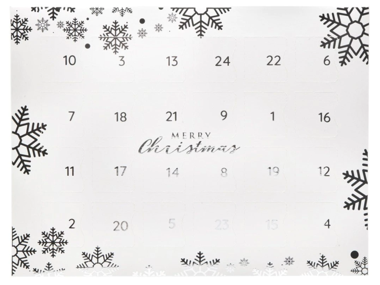 Størrelsen på julekalender er 192 x 32,5 x 252 mm