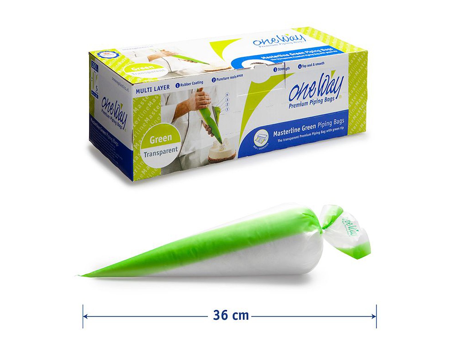 One Way Masterline sprøjteposer er professionelle engangs sprøjteposer, udviklet til bagere, konditorer og professionelle køkkener med høje krav til hygiejne og funktionalitet. Sprøjteposerne er fremstillet af slidstærk og fødevaregodkendt plast og sikrer optimal kontrol og arbejdskomfort ved både forberedelse og servering.