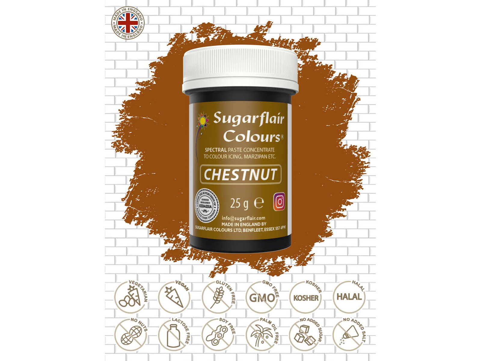 Farvepasta kan bruges i alle fødevarer undtagen ren chokolade. Særdeles velegnet til marcipan og fondant.