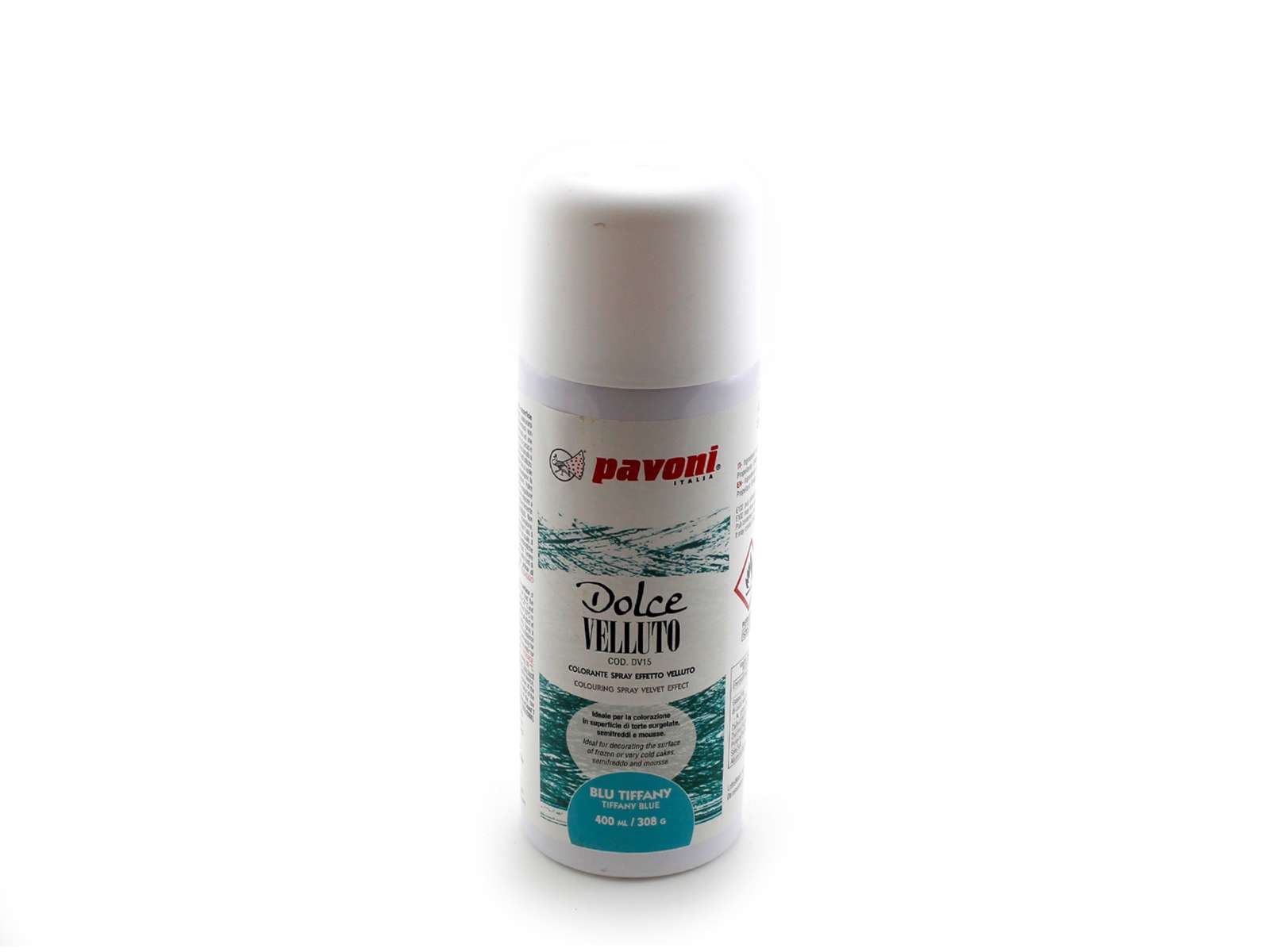 Farvespray på kakaosmør base. Ved sprøjtning på kolde overflader krystalliserer kakaosmørret og giver fløjls effekt. Meget nem at bruge.