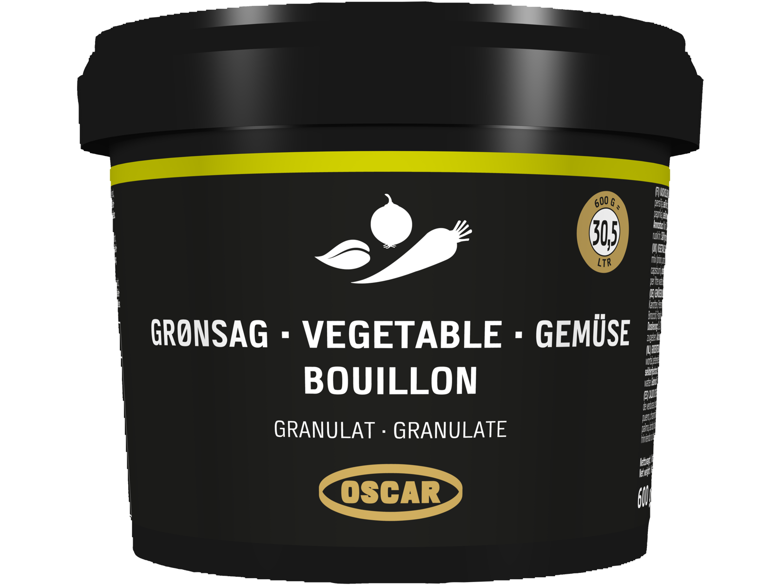 OSCAR Grønsagsbouillon granulat har en autentisk og naturlig smag af grøntsager, den er utrolig alsidig og gør sig specielt godt som base i grønsagsretter.