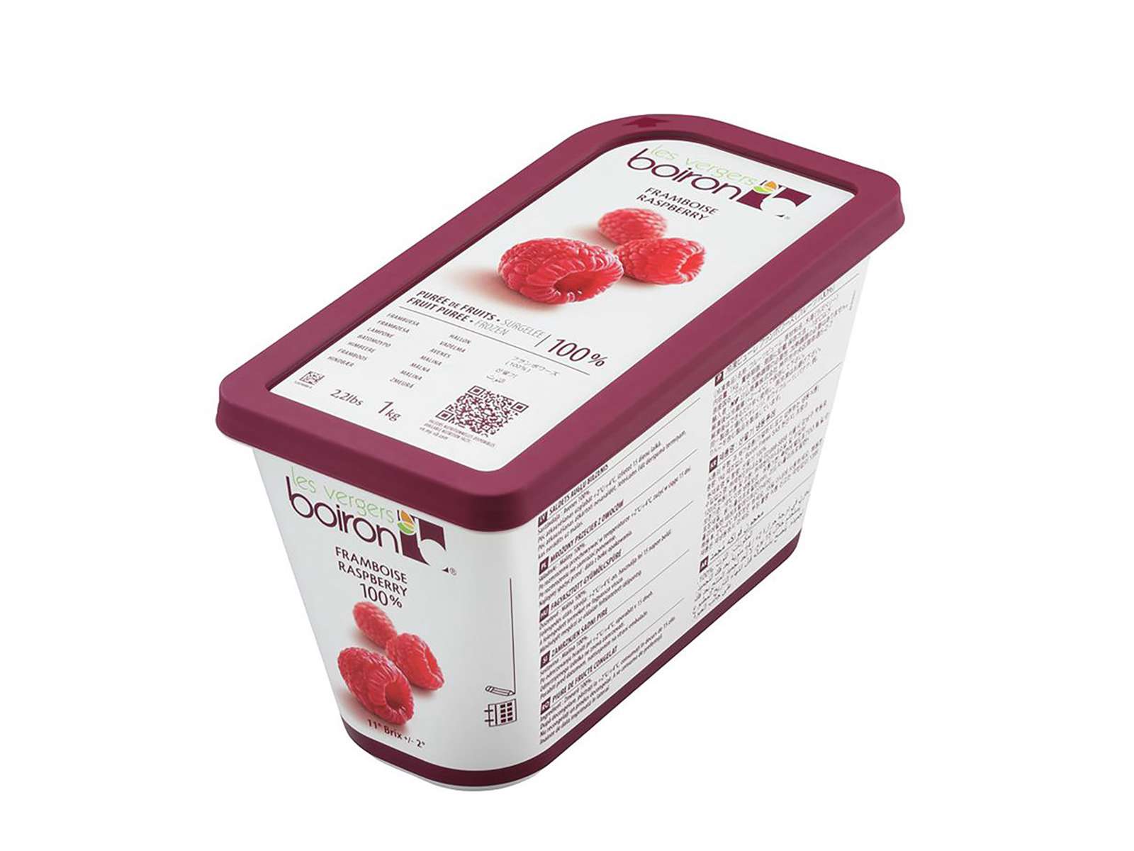 Boiron frugtpuréen er lavet af 100% hindbær og er ikke tilsat sukker. Puréen har en flot, mørk lyserød farve og en naturlig intens hindbærsmag.
