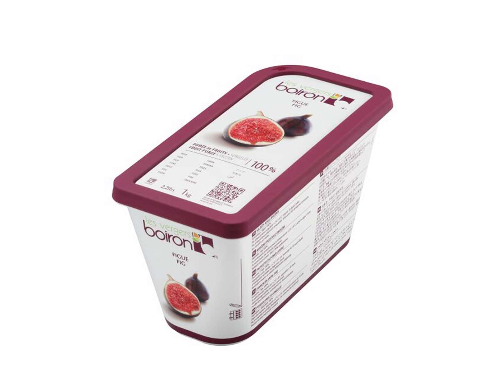 Frugtpuréen fra Boiron er lavet af 100% figen og er ikke tilsat sukker. Den er dyb lilla-brun og har en tyk konsistens med synlige kerner.