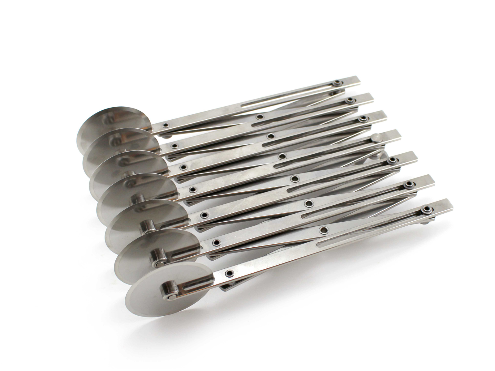 Sporejern i rustfrit stål med 7 hjul. Bruges til at skære ens strimler af dej, fondant og marcipan.