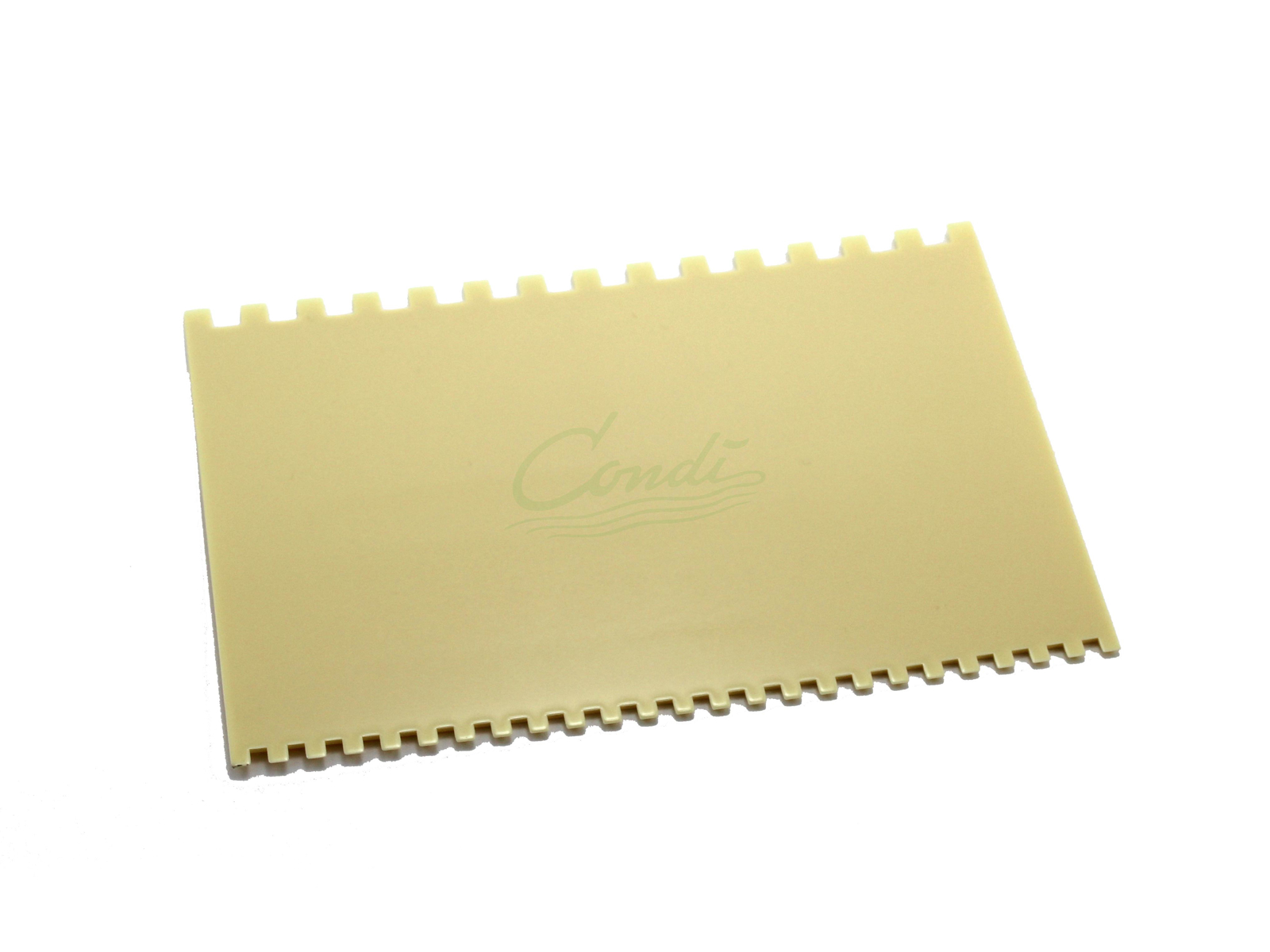 Kam plastskraber dobbeltsidet til chokoladearbejde eller kagearbejde. Lav flotte mønstre i chokoladen eller på smurte kager.