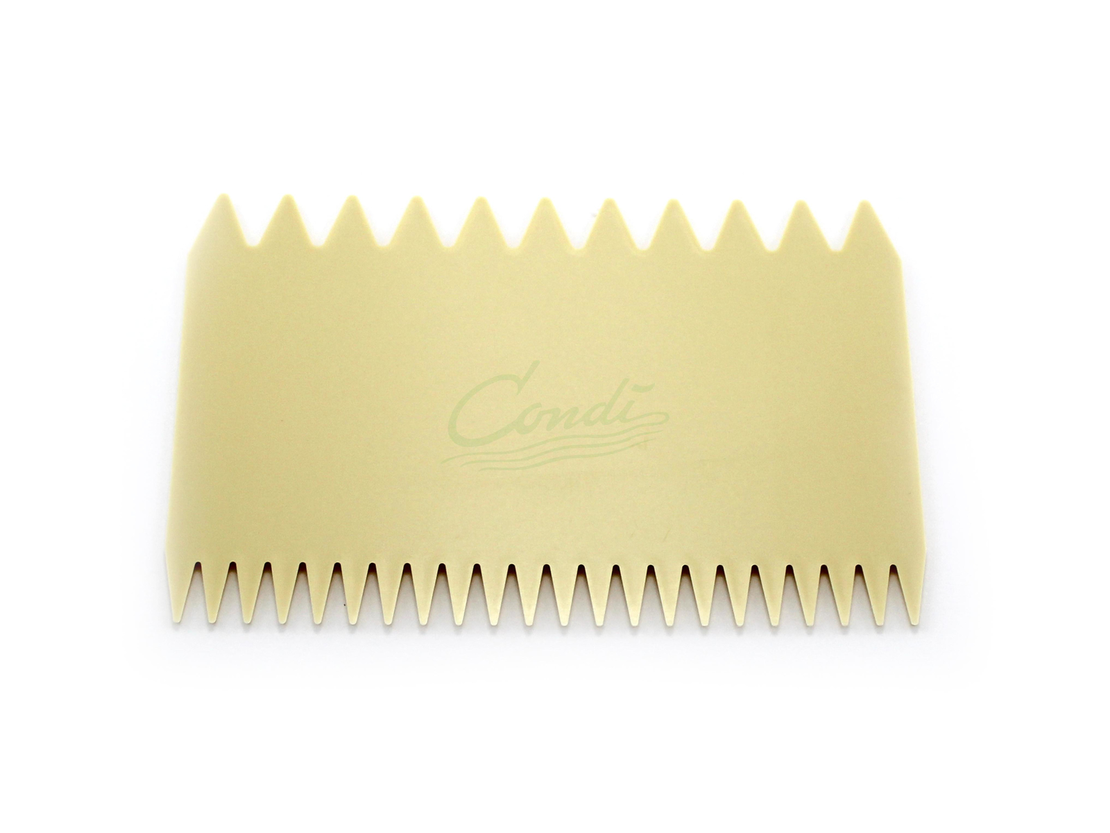 Kam plastskraber spidstandet til chokoladearbejde eller kagearbejde. Lav flotte mønstre i chokoladen eller på smurte kager.
