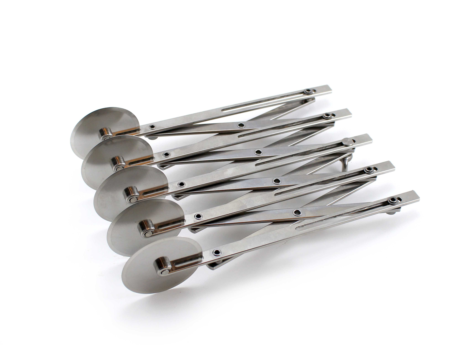 Sporejern i rustfrit stål med 5 hjul. Bruges til at skære ens strimler af dej, fondant og marcipan.
