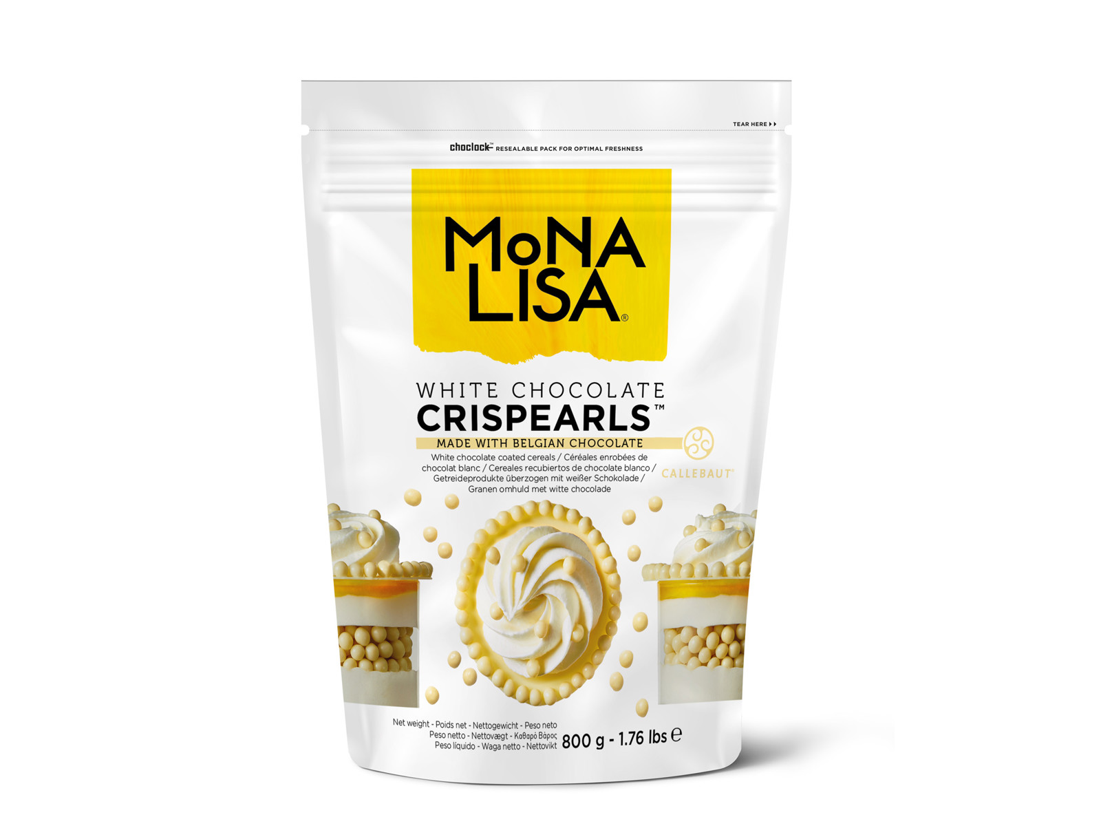 Hvid chokolade Crispearls kombinerer Callebaut's hvide chokolade med et sprødt hjerte af ristet kiks.