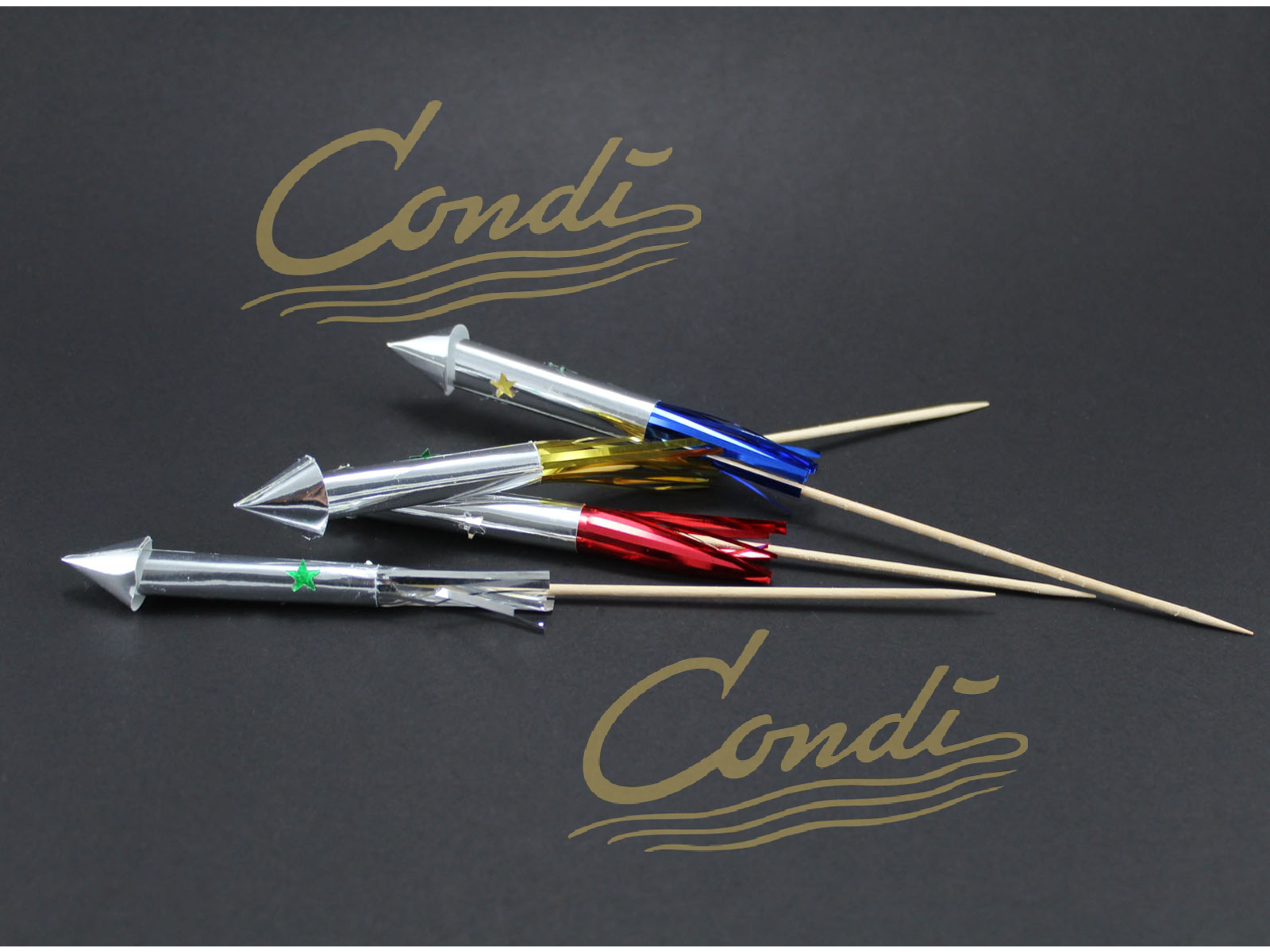 Raketter på pind i forskellige farver.