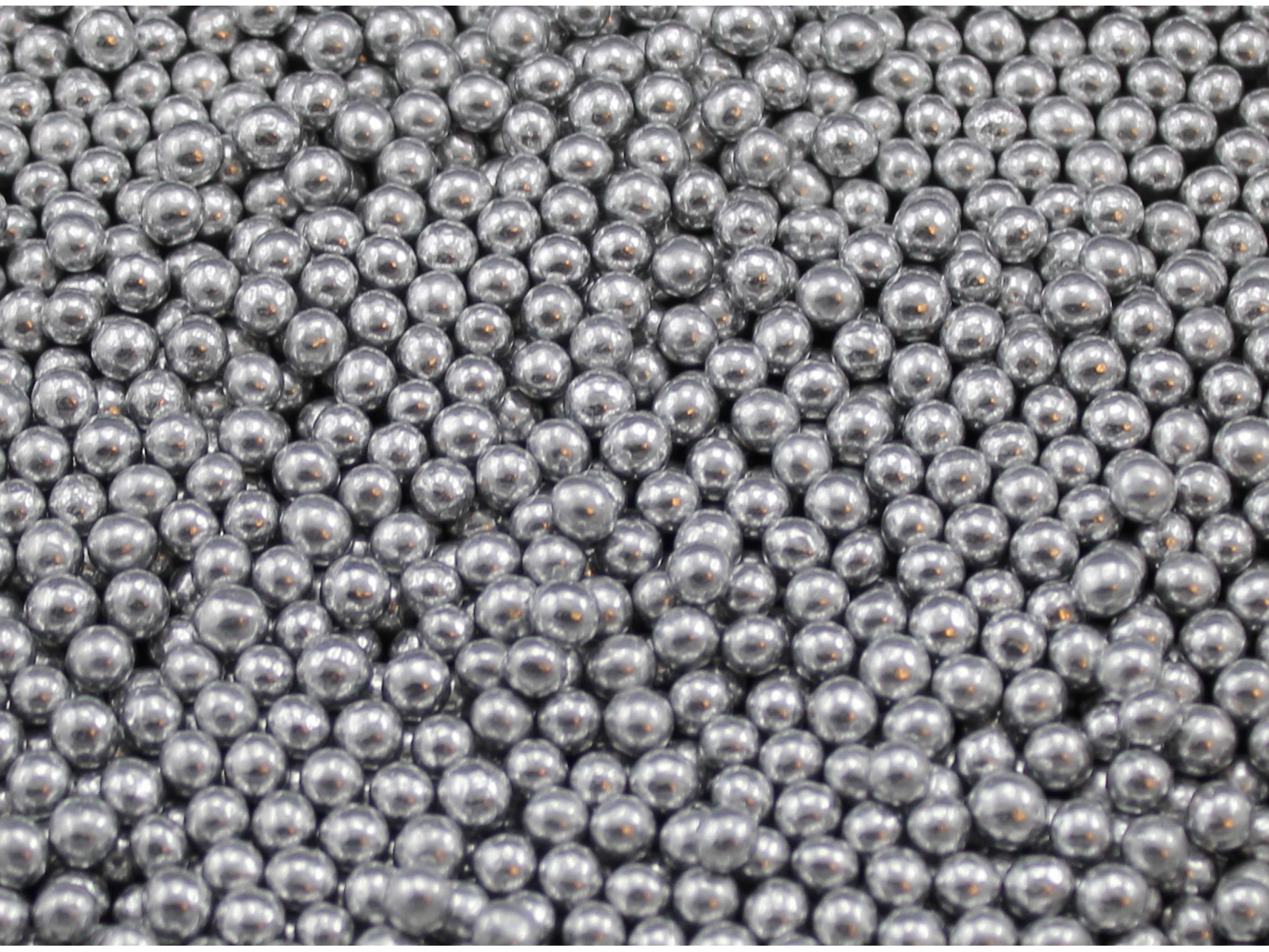 Flotte sukkerperler i sølv der giver den perfekte knasende topping på dine kager.