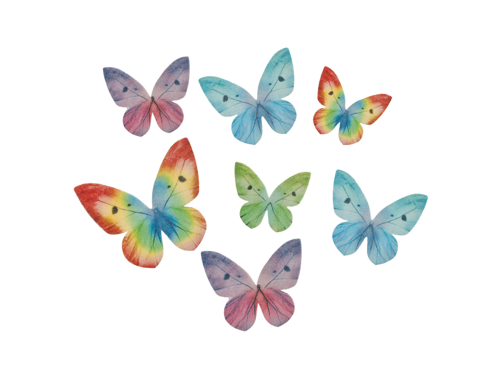 Flotte assorterede sommerfugle i spiseligt vaffelpapir.