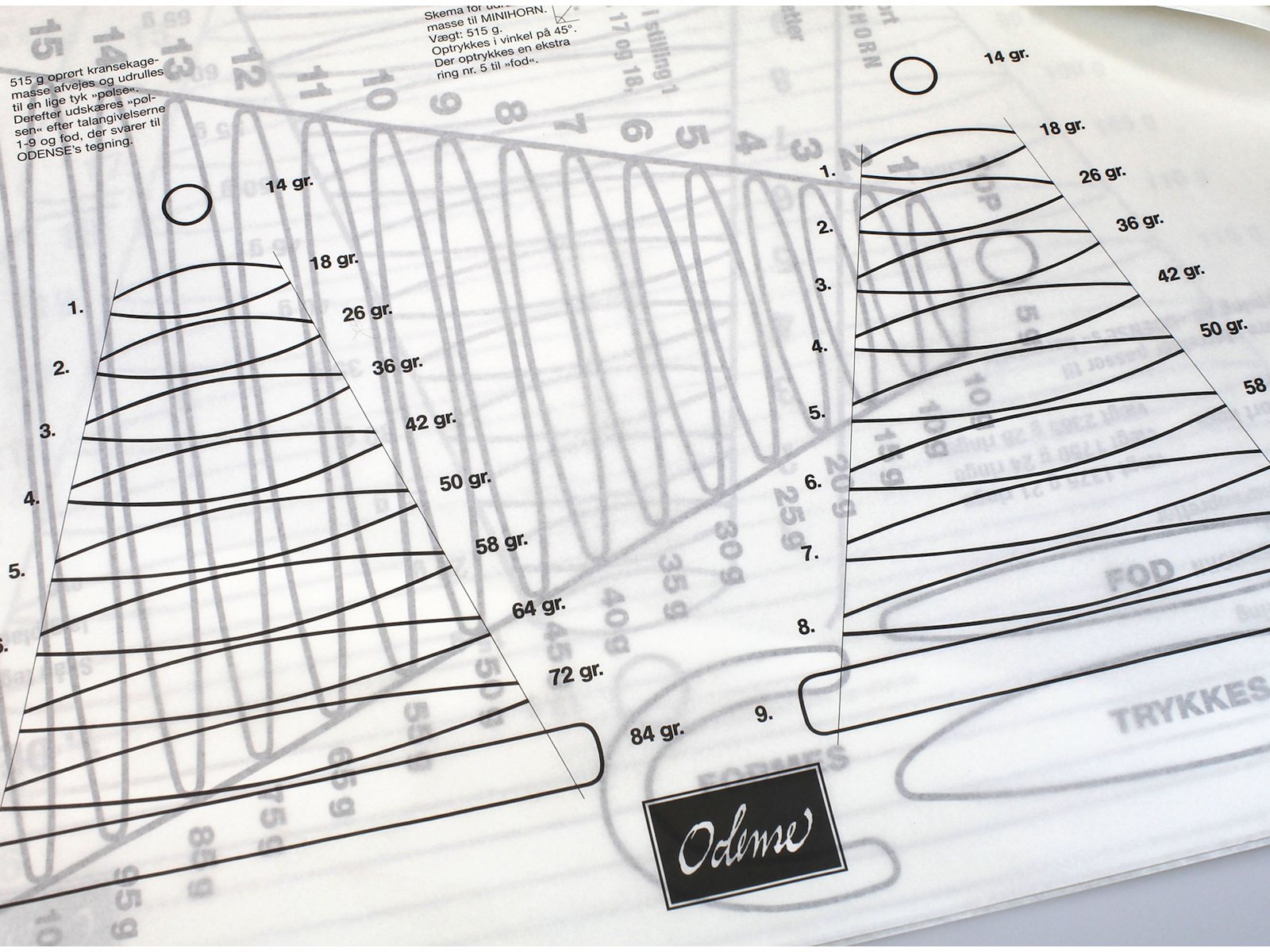 Trykkes op i stilling 1 45 grader og sættes på en kransekage fod.