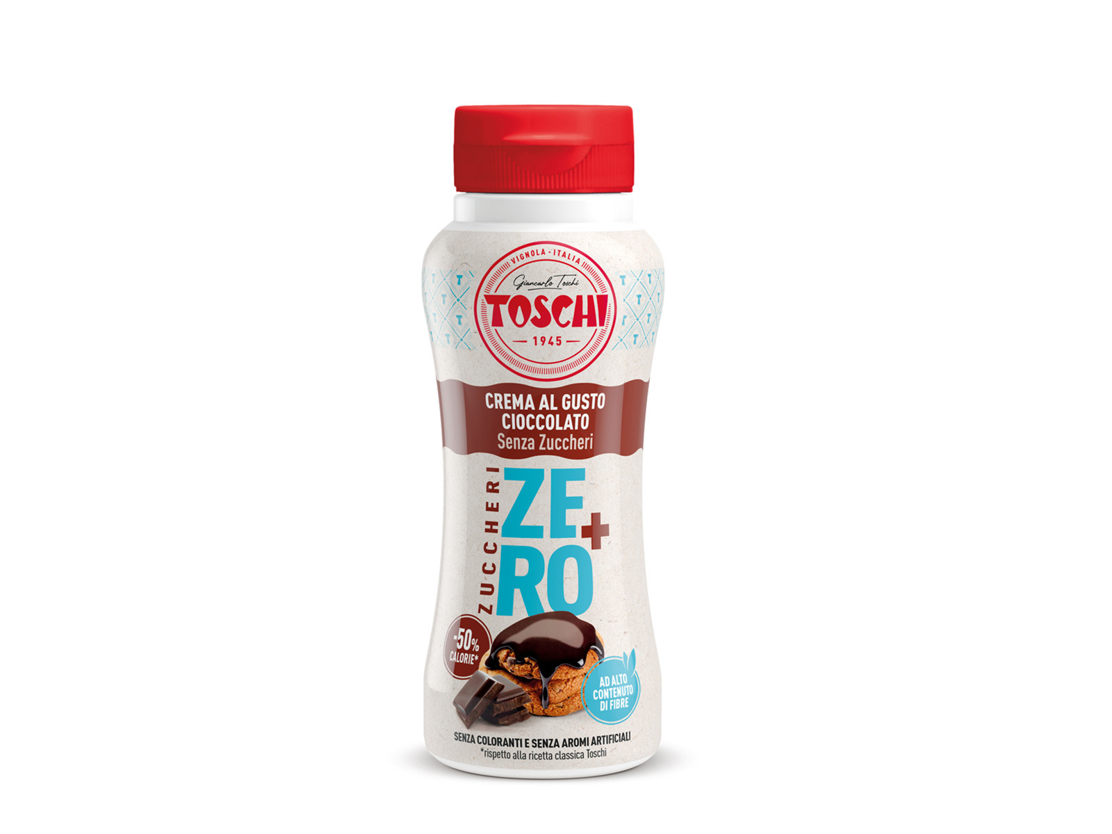 Toschi topping Zero+ er en sukkerfri topping uden farve og kunstige smagsstoffer.50% færre kalorier end den klassiske opskrift.