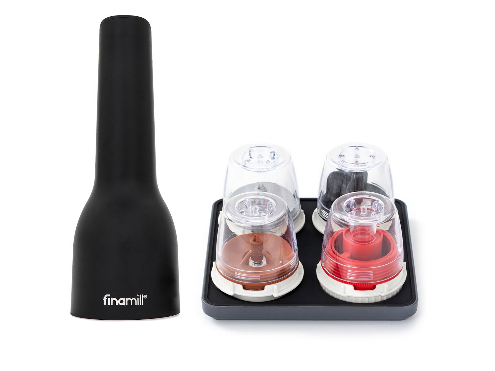 Finamill Krydderikværn sort med 4 beholder