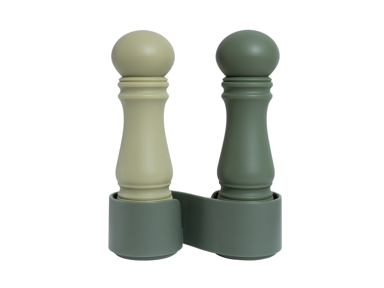 Kværnene er placeret i en holder som sørger for, at der ikke kommer salt/peber støv på bordet.