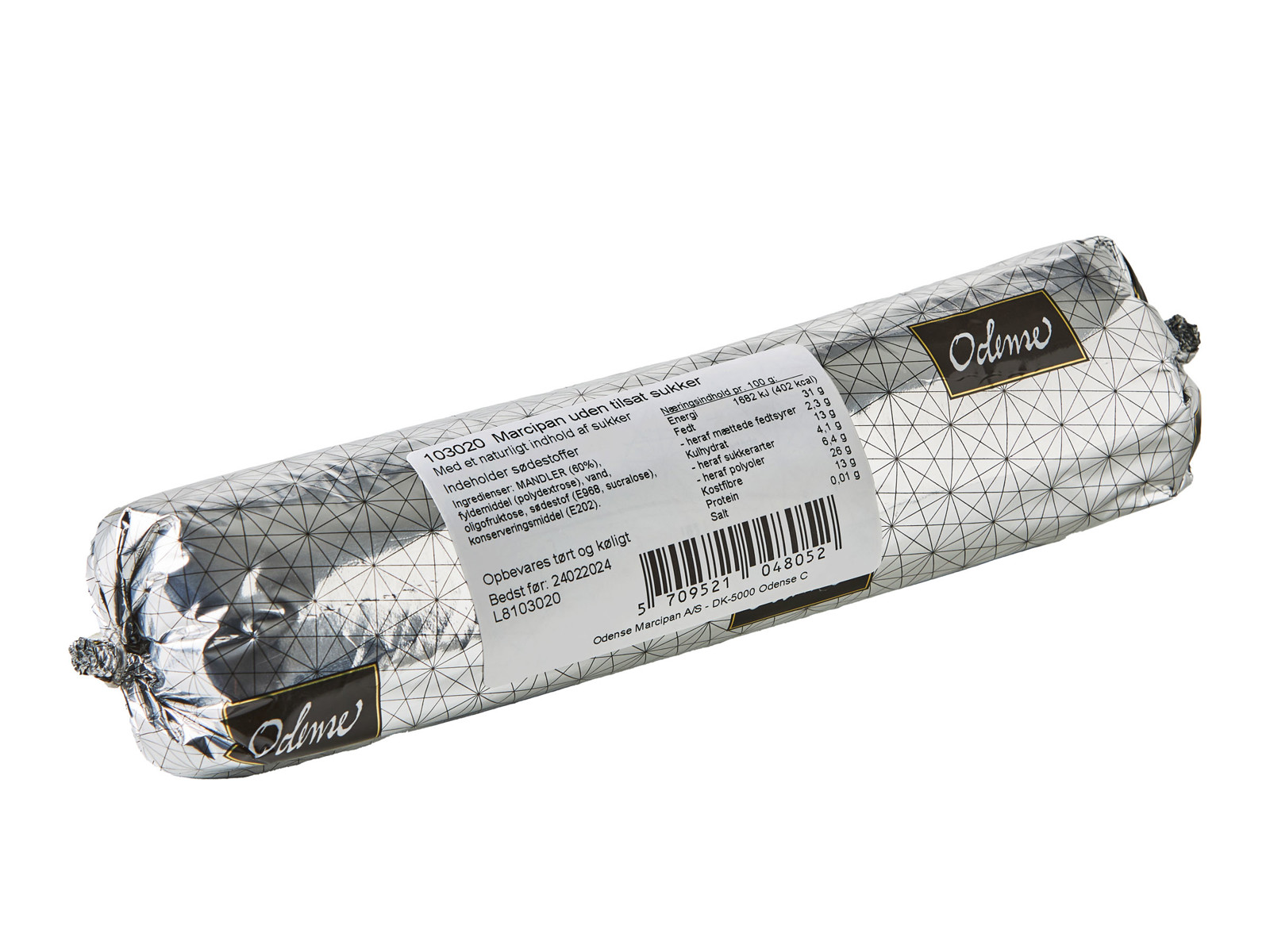 Marcipanen er uden tilsat sukker, men har et naturligt indhold af sukker, som stammer fra mandlerne.