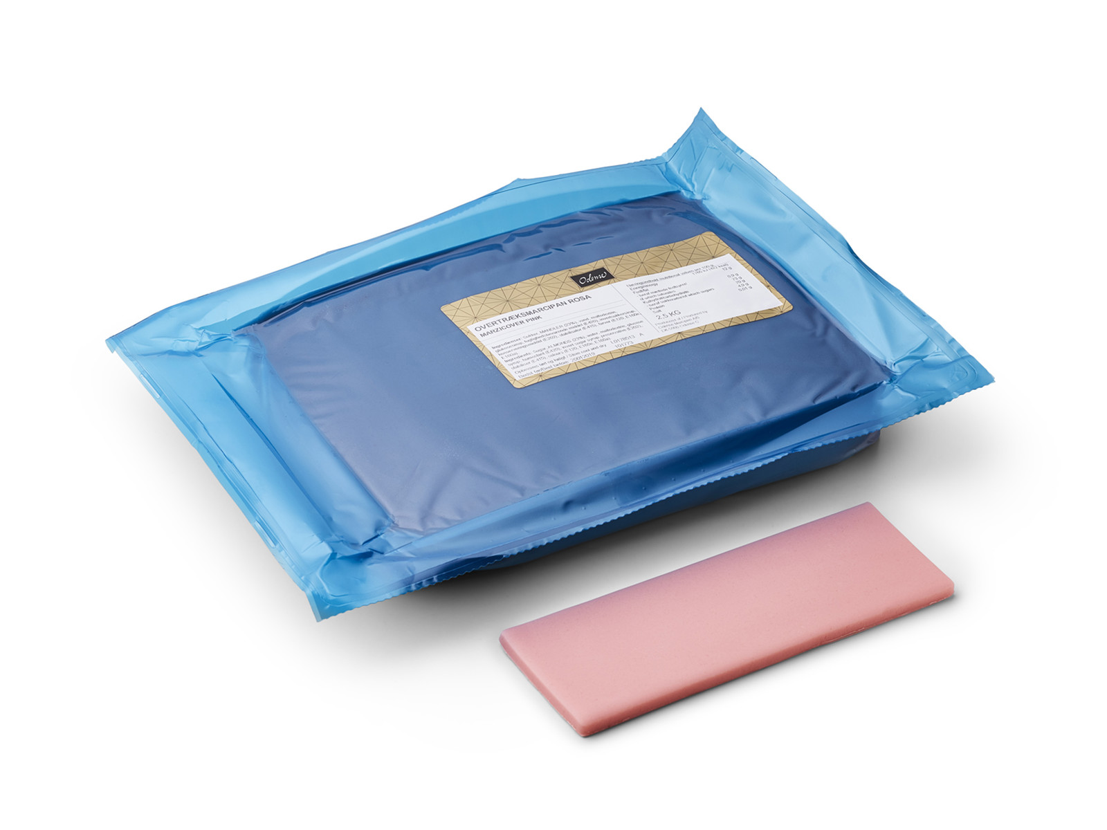 Pink/rosa overtræksmarcipan fra Odense er en fint revet og smidig marcipan, der er ideel til kageovertræk og dekoration.