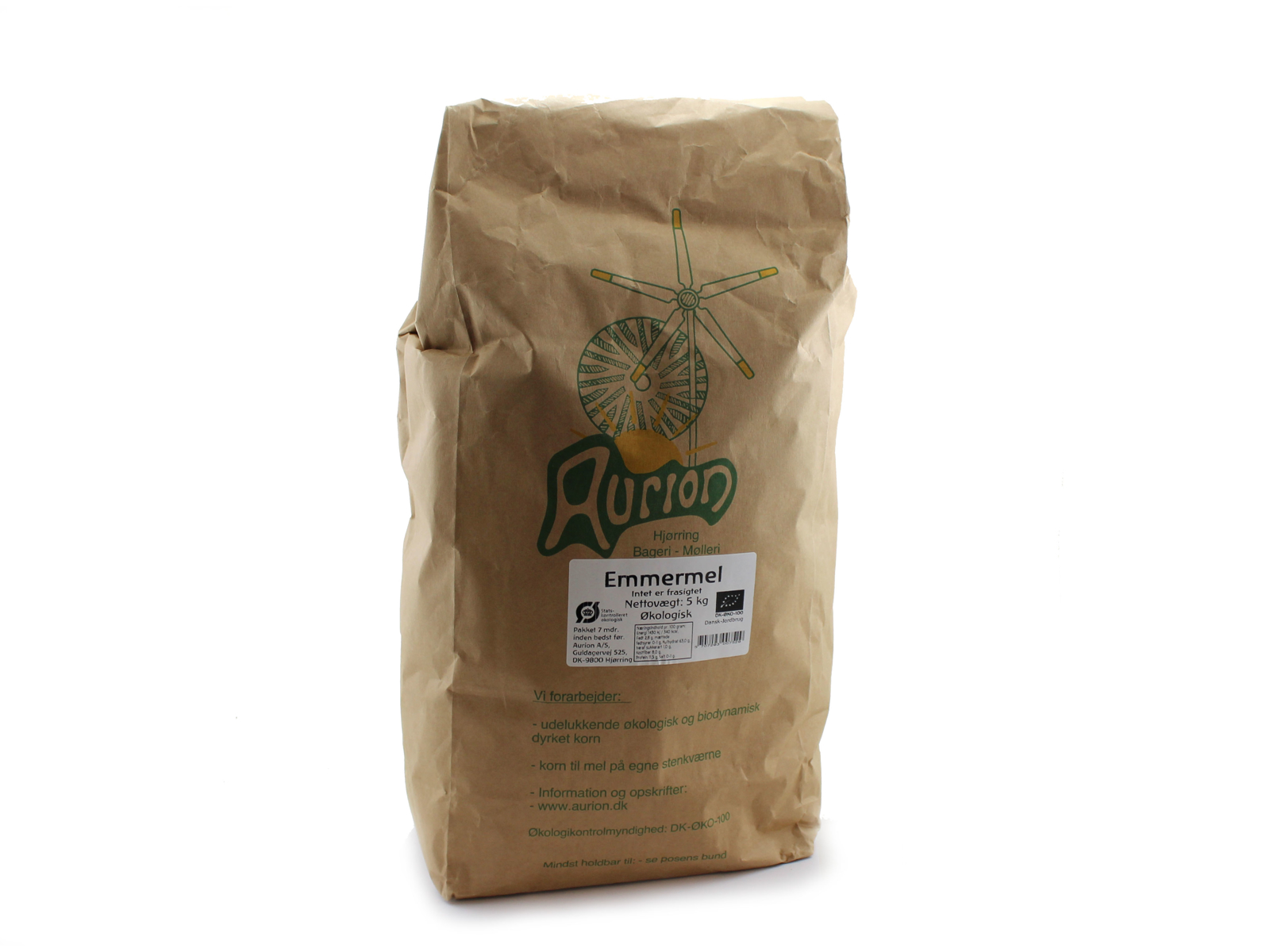 Emmer fuldkornsmel fra Aurion er baseret på den gamle kornart Emmer der er i familie med speltmel.
