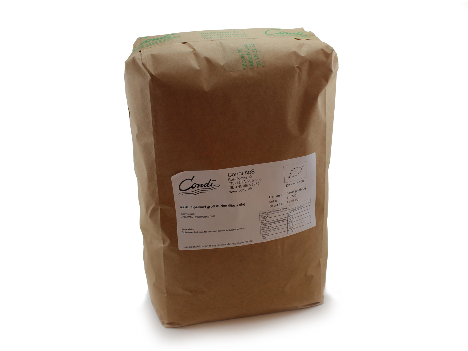 Økologisk groft speltmel fra Aurion er malet på stenkværne og kan bruges enten som et rent speltbrød eller som supplement i et anden brød, hvor det tilfører smag og fylde.