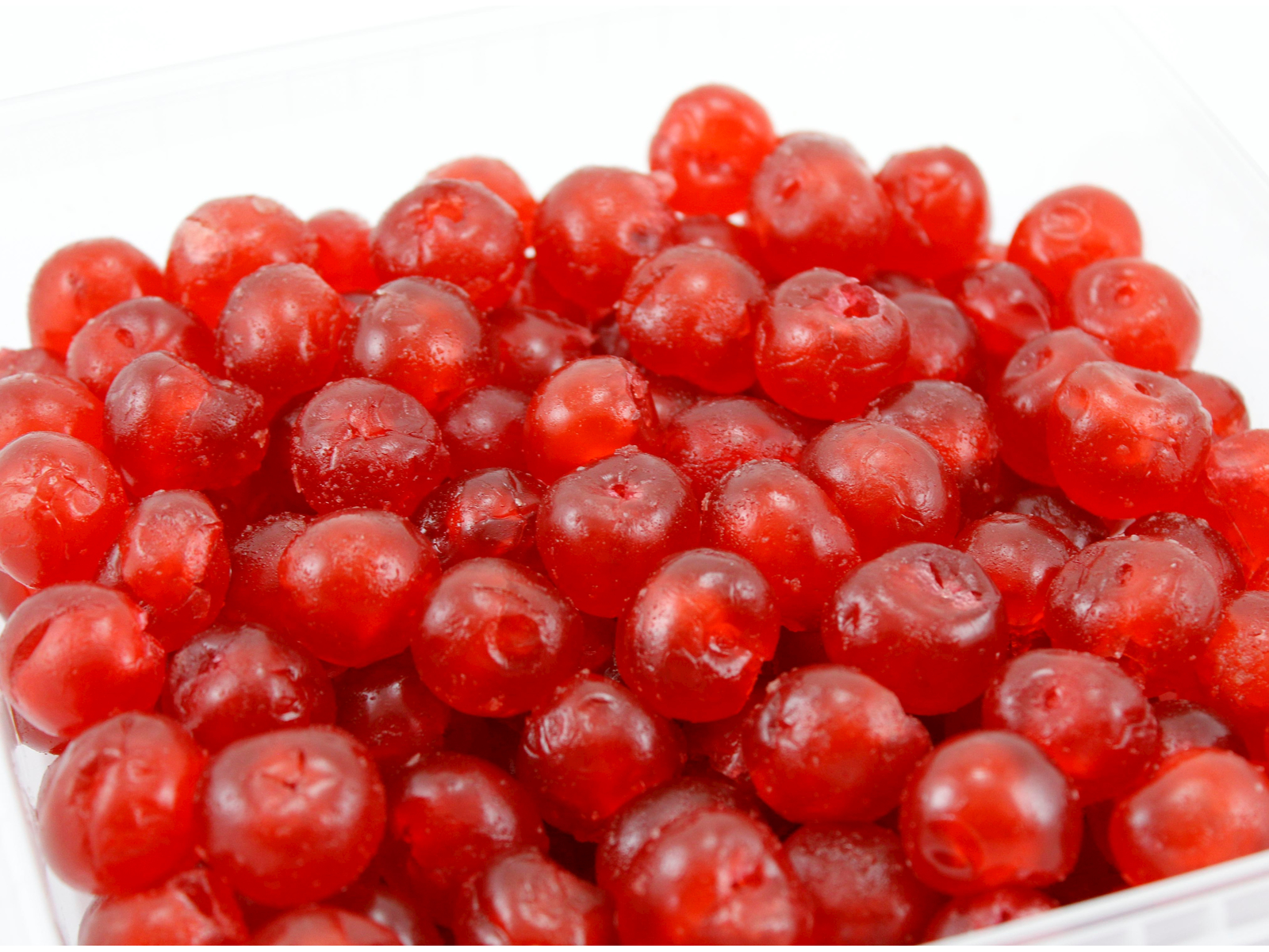 De kandiserede kirsebær har en lækkert tekstur og en virkelig frisk og dejlig smag.