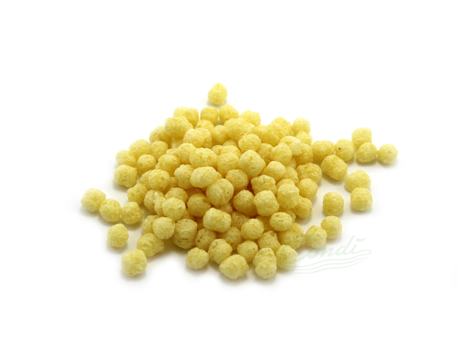 De poppede majskerner er blevet dampet og dernæst varmebehandlet. De kan bruges direkte i din dej, da de ikke skal ligge i blød natten over.