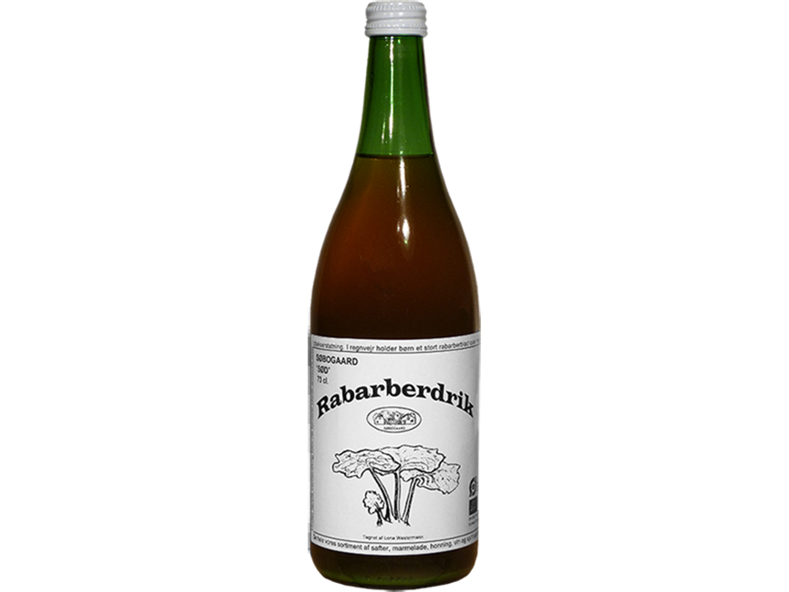 Saft fra økologiske rabarber blandet med vand og økologisk rørsukker er med til at skabe denne lækre drik fra Søbogaard.