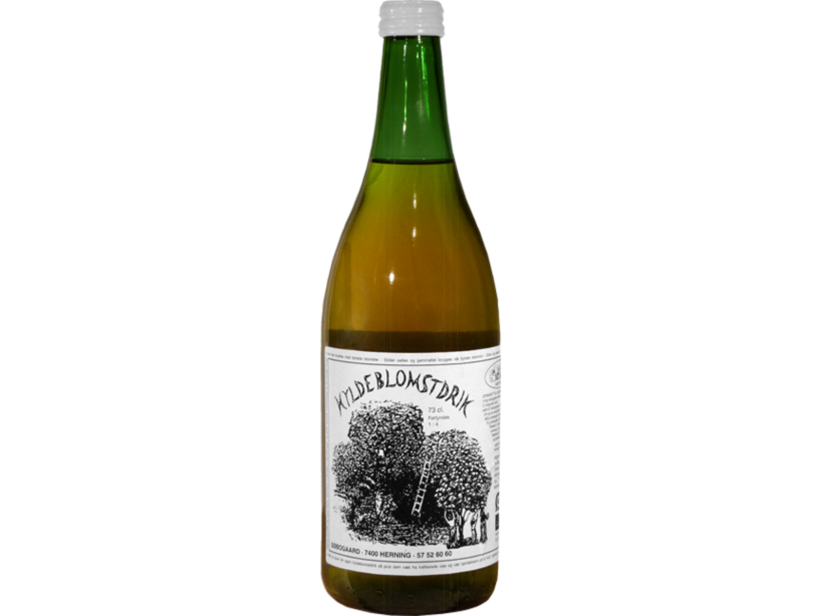 Forfriskende hyldeblomstdrik fra Søbogaard lavet på udtræk af økologiske hyldeblomster og koncentrat af citron.