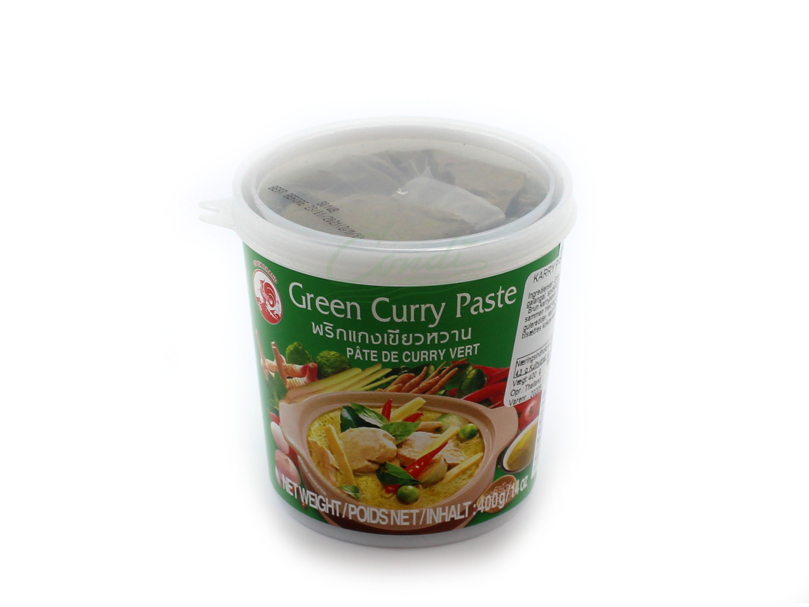 Den helt rigtige thailandske Cock Brand grøn curry paste er en fremragende ingrediens til krydrede karry retter med kød, fisk eller grøntsager.