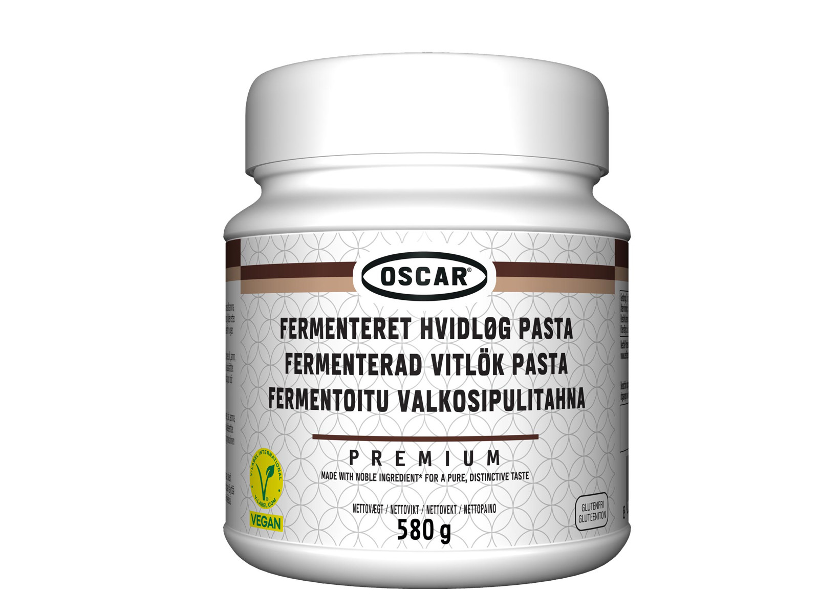 OSCAR Premium Fermenteret Hvidløg er vegansk, glutenfri og laktosefri.
