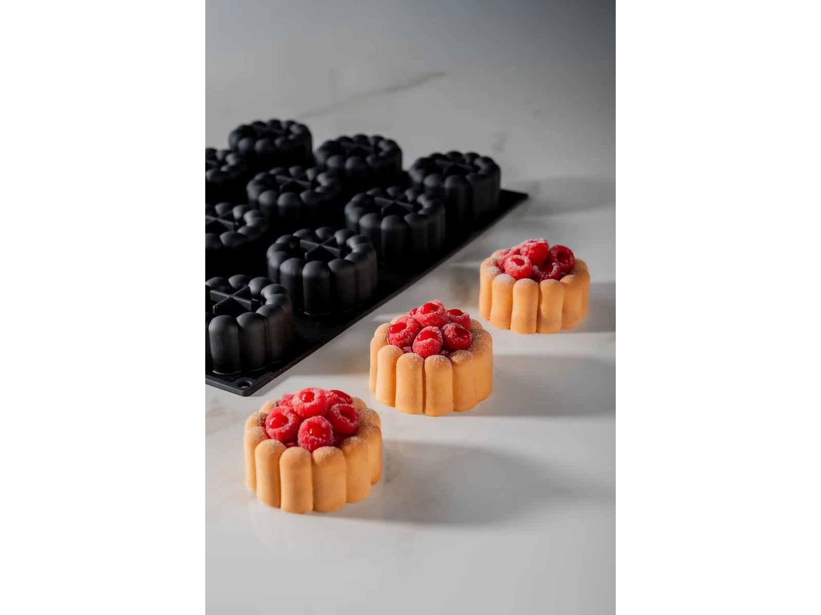 En række silikoneforme, der kan bruges til hovedretter, forretter og desserter.
