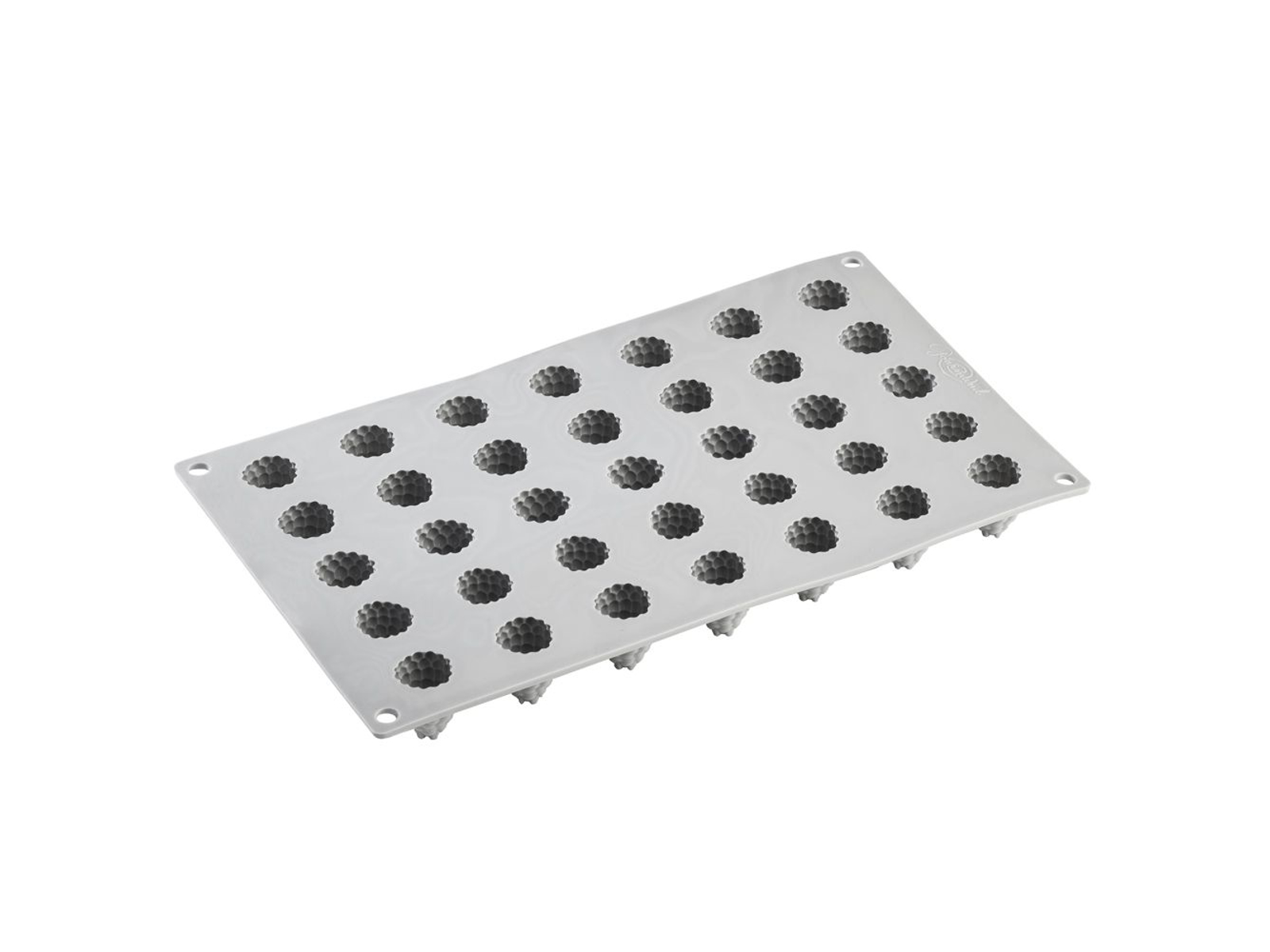 Hver bær måler Ø24 x27 mm og indeholder ca. 7 ml. Silikoneformen er 300x175mm. Der er 35 bær i hver form.