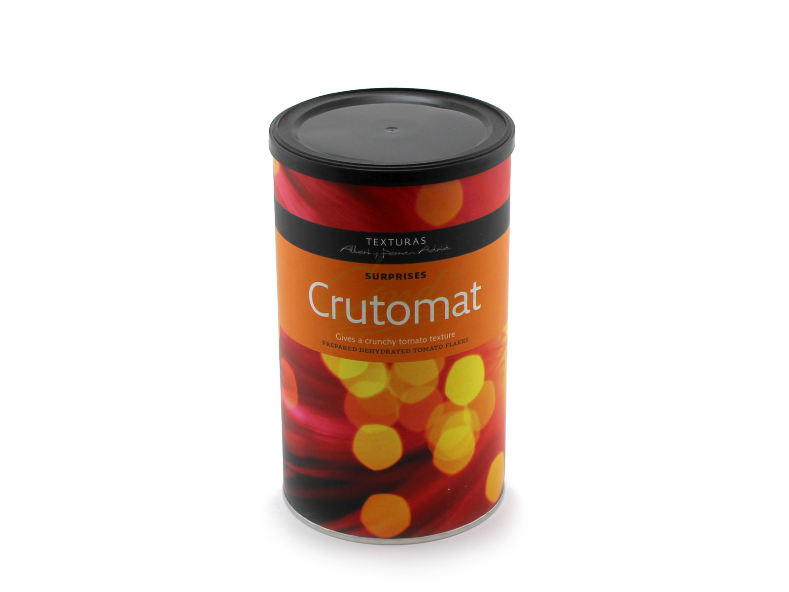 Crutomat er sprøde flager af dehydreret tomat, med en intens og attraktiv orange farve. Maden bliver ikke tilført nogen surhed.