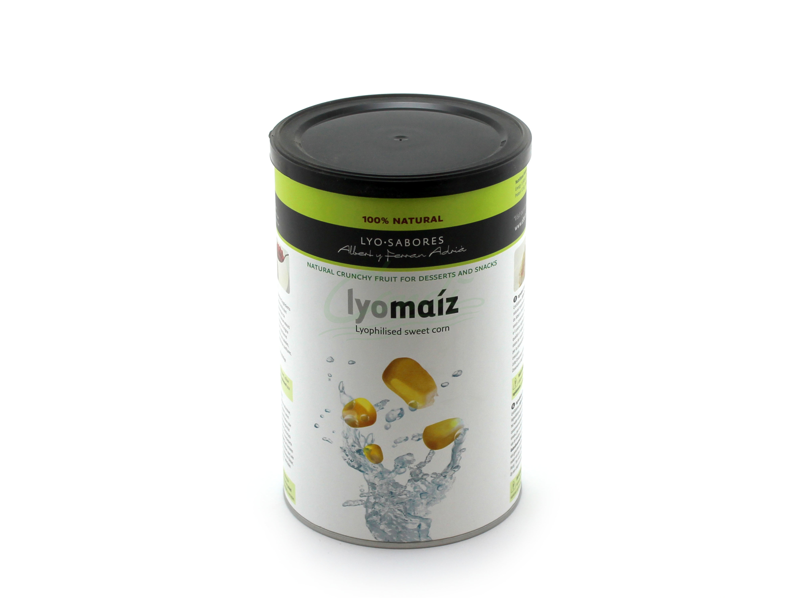 Textura frysetørret majs, Lyomaiz, er en del af en ny linje med frysetørrede frugter skabt af Albert og Ferran Adrià. Serien hedder LYO Saborres.